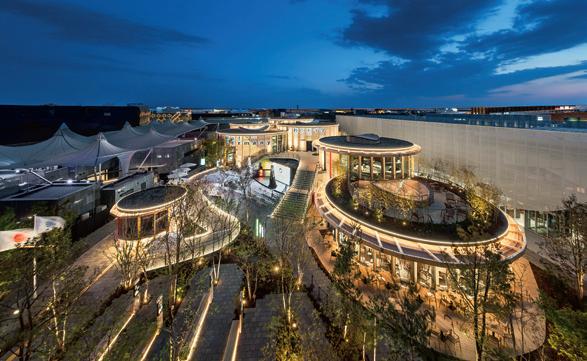 Mit dem Japanischen Pavillon auf der Expo 2025 wollten NIKKEN SEKKEI mit dem General Designer und Nendo-Gründer Ōki Satō den „Kreislauf des Lebens“ veranschaulichen: „Unser Ziel war es, einen wirklich ‚lebendigen‘ Organismus zu schaffen – einen Raum, der Zirkulation und Erneuerung auf greifbare, wirkungsvolle Weise verkörpert.“ Als monumentaler Ring aus Brettsperrholzplatten angeordnet, wartete das Gebäude im Innern mit einer 11.000 Quadratmeter großen Ausstellung auf, die in drei Sektoren unterteilt war und die großen Themen der Kreislaufwirtschaft interaktiv vermittelte: Im Bereich „Plant“ wurde eindrucksvoll gezeigt, wie mithilfe einer stromerzeugenden Biogasanlage aus Müll, der auf dem Expo-Gelände gesammelt wurde, sauberes Wasser werden kann. In der „Farm Area“ wurde Wasser zu Material umgewandelt und in der „Factory“ wurden aus jenem Material, in diesem Fall Algen, wiederum diverse Produkte gestaltet. Kunstvolle Rauminszenierungen ergänzten in jedem Bereich diesen Kreislauf und machten die jeweiligen Aspekte emotional und multisensorisch erfahrbar. Bei der Gestaltung der Architektur legte NIKKEN SEKKEI großen Wert auf Wiederverwendung: So wurde das Holz nach Ende der Veranstaltung demontiert und in Gebäuden in ganz Japan wiederverwendet. Darüber hinaus waren alle Strukturverbindungen so konzipiert, dass sie sich leicht zerlegen ließen, wodurch Abfall reduziert wurde und der Pavillon zum Sinnbild eines geschlossenen Lebenskreislaufs avancierte. For the Japan Pavilion at Expo 2025, NIKKEN SEKKEI, with the General Designer and Nendo founder, Ōki Satō, wanted to depict the “circle of life”: “Our aim was to create a truly ‘living’ organism – a space that embodies circulation and renewal in a tangible, impactful way.” The building’s interior, arranged as a monumental ring of cross-laminated timber panels, featured an 11,000-square-metre exhibition divided into three sectors that interactively conveyed the major themes of circular economy. The “Plant” area impressively demonstrated how an electricity-generating biogas plant can be used to turn waste collected on the Expo site into clean water. In the “Farm Area” water was transformed into material and in the “Factory” various products were created from this material, in this case algae. In each area, artistic staging that addressed all the senses made the various aspects of this cycle emotionally tangible. When designing the architecture, NIKKEN SEKKEI attached great importance to reuse. The wood, for instance, was dismantled at the end of the event and reused in buildings throughout Japan. All structural connections were also designed to be easy to dismantle, reducing waste and making the pavilion a symbol of a closed circle of life.