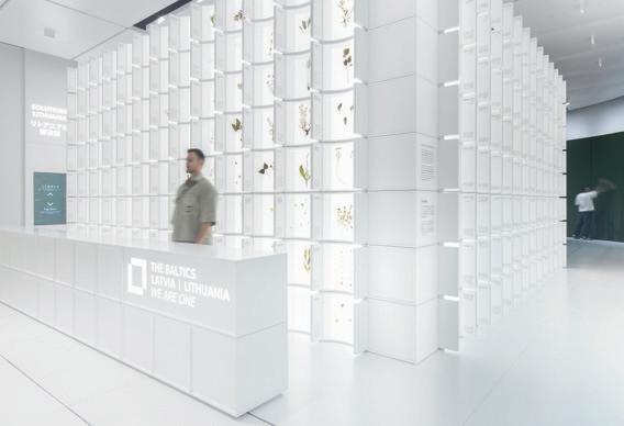 Mit dem Baltischen Pavillon auf der Expo 2025 in Osaka wollten Lettland und Litauen den Fokus auf eine menschenzentrierte Gesellschaft legen –weg von der alleinigen Orientierung an Technologie, hin zur Kraft der Zusammenarbeit, Empathie und gemeinsamen Verantwortung bei der Gestaltung der Zukunft. Unter dem Motto „We Are One“ schuf Kettler, ein Zusammenschluss aus sechs Kreativagenturen, dementsprechend einen Ort der Begegnung für alle Kulturen und Generationen. Zentrales Element der 205 Quadratmeter großen Inszenierung war dabei die „Kizuna Wall“ – eine interaktive Installation aus grünem Glas, die als Symbol für die Wälder des Baltikums stand. Besuchende waren hier eingeladen, handgeschriebene Nachrichten zu hinterlassen, die nach wenigen Augenblicken als Kondenswassertropfen wieder verblassten und so die Flüchtigkeit der Zeit und die Dringlichkeit unserer Entscheidungen einfingen. Doch auch wenn die Botschaften wieder verschwanden, blieb die Wand lebendig und veranschaulichte so den ständigen Kreislauf des Wandels. Ergänzt wurde diese poetische Inszenierung durch die „Nature’s Pharmacy“: ein multifunktionaler Veranstaltungsraum, der nicht nur als Ort für Gespräche und neue Freundschaften diente, sondern auch fast 300 baltische Pflanzen präsentierte, die das traditionelle Heilwissen der baltischen Region und ihre Rolle in der modernen Innovation illustrierten. With the Baltic Pavilion at the Expo 2025 in Osaka, Latvia and Lithuania wanted to shift the focus to a people-centered society – moving away from a sole focus on technology towards the power of collaboration, empathy and shared responsibility in shaping the future. Under the slogan “We Are One”, Kettler, a consortium of six creative agencies, created a meeting place for all cultures and generations. The central element of the 205-square-metre presentation was the “Kizuna Wall” – an interactive installation made of green glass, symbolising the forests of the Baltic region. Visitors were invited to leave handwritten messages on the wall, which faded again after a few moments as drops of condensation, capturing the fleeting nature of time and the urgency of our decisions. Even when the messages disappeared again, however, the wall remained alive, illustrating the constant cycle of change. This poetic staging was complemented by “Nature’s Pharmacy”: a multi-functional event space serving as a venue for discussions and the formation of new friendships. It also showcased almost 300 Baltic plants that illustrated the traditional healing knowledge of the Baltic region and its role in modern innovation.