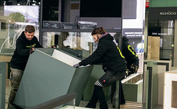 Second Life: Nach der BAU 2025 konnten kohlhaas*partner und TRASH GALORE unter anderem das Plattenmaterial des SchücoMessestands an neun soziale Initiativen weitergeben. Dadurch wurden über 23 Tonnen Material einer neuen Nutzung zugeführt und rund 16,5 Tonnen CO 2 -Emissionen vermieden. Second Life: kohlhaas*partner and TRASH GALORE amongst others donated the panels from the Schüco trade fair stand after the BAU 2025 to nine social initiatives. As a result, over 23 tons of material were put to new use and around 16.5 tons of CO 2 emissions were avoided.