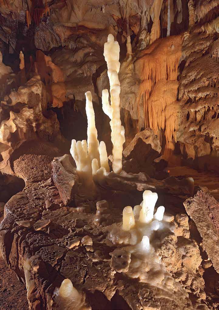Recent calcite formations on blocks that have fallen from the ceiling. The gallery’s name was inspired by their unusual form.
