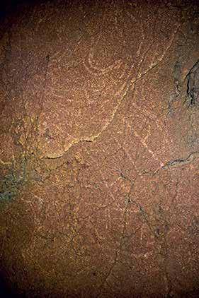 Another consequence is that, once scraped, the more resistant white limestone beneath can be finely engraved with hard-pointed tools such as flint burins.