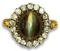 Chrysoberyl cat’s-eye and diamond cluster ring, c.1900.