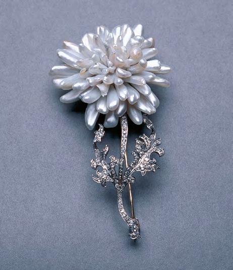 Tiffany & Co. diamond chrysanthemum brooch with a cluster of Mississippi pearl petals, c.1910.