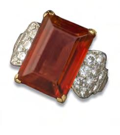 Art Deco tawny-brown citrine and diamond ring attributed to Cartier, c.1935.