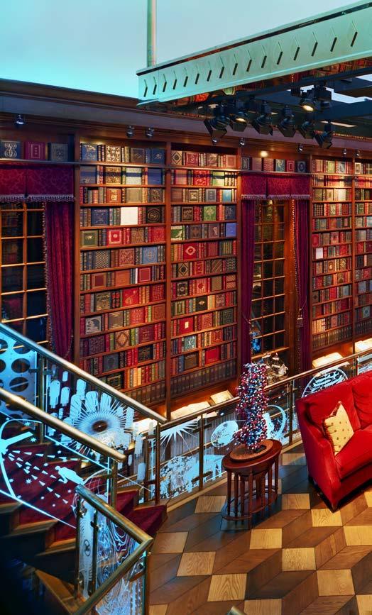 RIGHT: The 3,600-squarefoot (335-square-meter) library includes spaces for study and reflection, in addition to the collection of 38,000 books. The placement of each book was scrupulously mapped before fabrication of the shelving commenced.