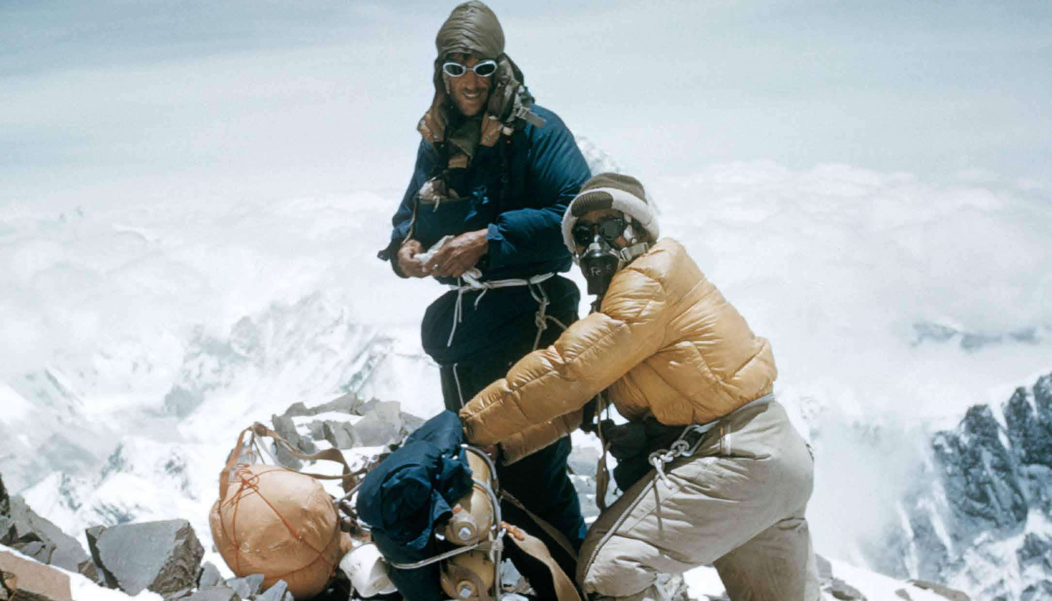 May 28, 1953: EDMUND HILLARY (left) and Tenzing Norgay set off for Camp IX below the South Summit of Mount Everest at an elevation of 8,510 meters. The following day, they became the first people to conquer the highest mountain on Earth at 8,848 meters above sea level.
