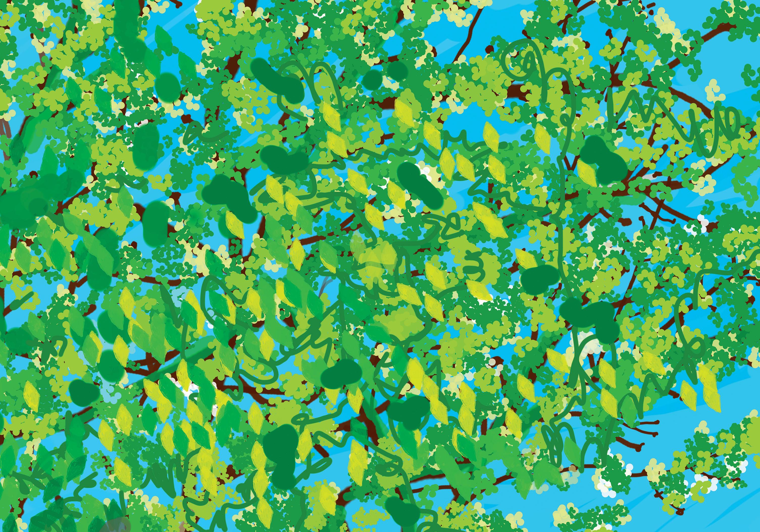 We are therefore especially delighted to present this exhibition of iPad paintings by David Hockney, comprising 116 images of pure joy in their depiction of the arrival of spring. With the world in the grip of the pandemic, and most of Europe shut down from March 2020, Hockney embarked on charting a subject that he had first tackled for the Academy’s exhibition ‘A Bigger Picture’ in 2012, when he created 52 images of the unfolding spring in East Yorkshire. Hockney knew that a Normandy spring would be subtly different and was eager to capture its particular richness, so with an updated version of Brushes, the iPad app he had first employed for the subject in 2011, he set about depicting it. His output was formidable, seeing him complete a work a day. His excitement as he captured this gloriously fast-moving subject sustained his energy at a time when the rest of the world had been forcibly slowed down. As we faced closed galleries, theatres and restaurants and abandoned meetings and travels, Hockney commented, ‘They can’t cancel spring.’ He was right, of course, as we witness now in this remarkable body of work.