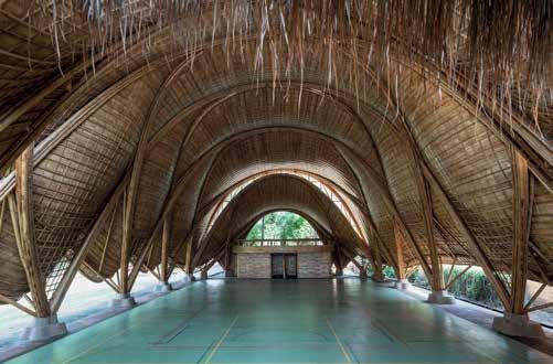 For example, compare the “dead” gym above right, with the one on next page, built under the direction of Elora Hardy for the Green School in Bali. Rather than follow in modernism’s footsteps, that structure “wraps around”16 students, “holds them, inspires them and nourishes them.”17 It’s a space that’s alive, transcendent.