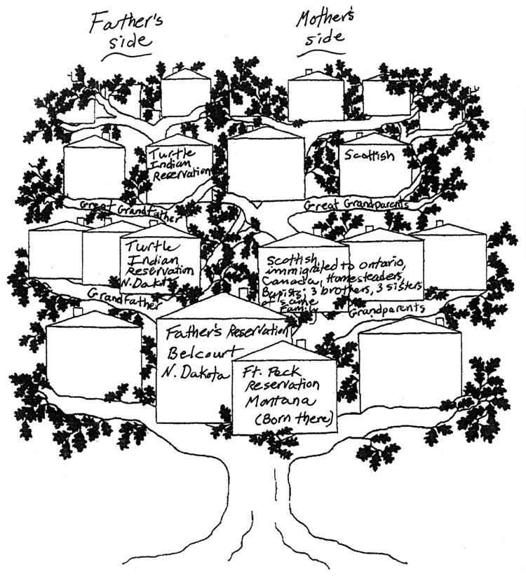 As Grant Walsh completed my first Environmental Family Tree exercise, I learned about the very different branches of her tree. The daughter of a Scottish/Canadian mother and a Native American father, Grant Walsh was born on a Blackfoot Native