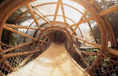 Hardy, trained in fine art rather than architecture, is the founder and creative director of “Ibuku,” a word that connotes “My Mother Earth” in Balinese. As recommended here, she’s brought her personal, environmental, lived experiences to the fore. Consciously or not, she drew from her environmental autobiography when founding Ibuku. Hardy’s use of bamboo echoes back to her childhood experience of place growing up in Indonesia.18 She recalls, “My earliest memory of Bali was my fifth birthday party. I remember making scarecrows together out of thatch,