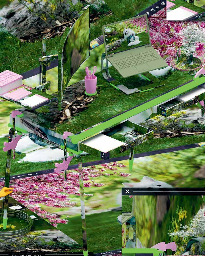 companion image, perhaps offers a slightly sinister vision of a working life fully engulfed in the realm of the digital.