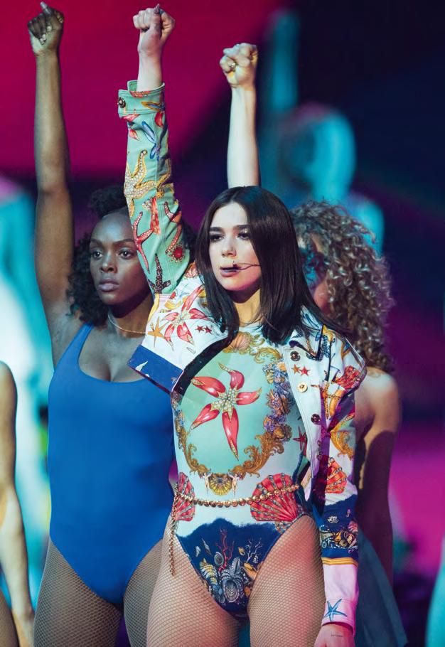 this page: Geri ‘Ginger Spice’ Halliwell at the 1997 BRITs. opposite: Girl Power – Dua takes the Union Jack for a spin at the BRITs in 2021.