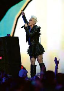 this page: Pink onstage in Las Vegas, 2012. opposite: Biker girl – Dua in a leather biker jacket at the BRIT Awards afterparty in 2024.