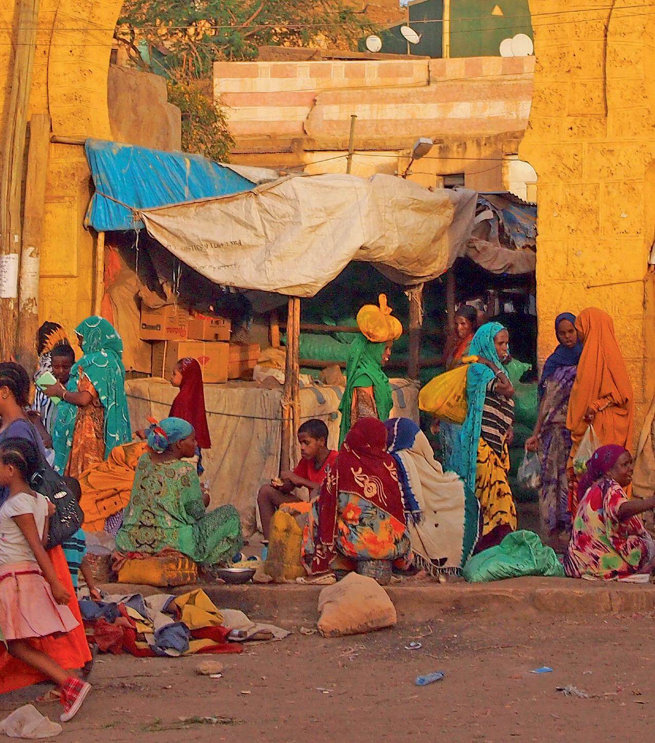 Signs of today’s Red Sea trade may be seen in the cowrie shells adorning these bowls displayed on a wall in a Harar house. And in the town’s covered market, sacks bulge with pungent Arabian spices.