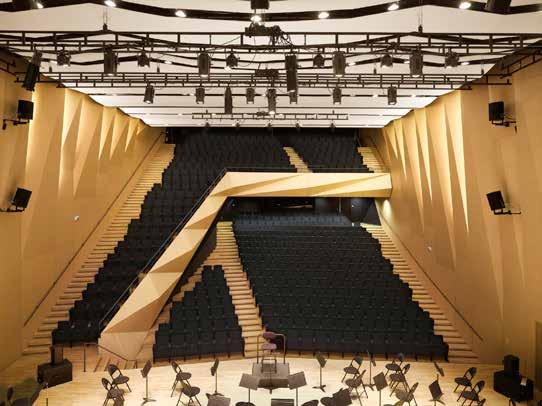 Folding is also applied to the concert hall. An asymmetrical interior was generated as its result, and helped to make a resonance with colorful, free-spirited music by Darius Milhaud, again a composer of Aix-enProvence whose name is crowned on the conservatory.