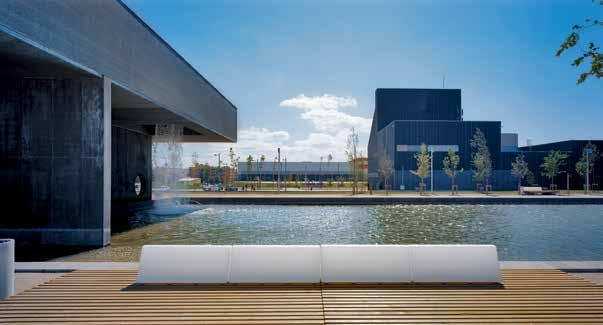 The power plant (District Heating and Cooling) building is a trigeneration facility that serves the buildings of the International Exhibition of 2008 in Zaragoza “Water and Sustainable Development.” It provides heating and cooling to all new buildings and co-generates electricity, connected to the general network. This is a facility that would usually be placed in the outskirts of the city or in industrial areas; or concealed through topographic or disguising strategies. Located between the Water Park and the neighborhood, very close to the river, concealing the facility is not an option and due to flood risks it cannot be buried underground. Instead, the power plant assumes its role of critical public facility with transparency and accepts the rules of urbanity without sprawling amorphously. It behaves towards the city and the park, without backyards, rear facades or service courtyards. The power plant becomes public and transparent through to strategies: a safe interior itinerary for public visits and interpretation and a public video art program.