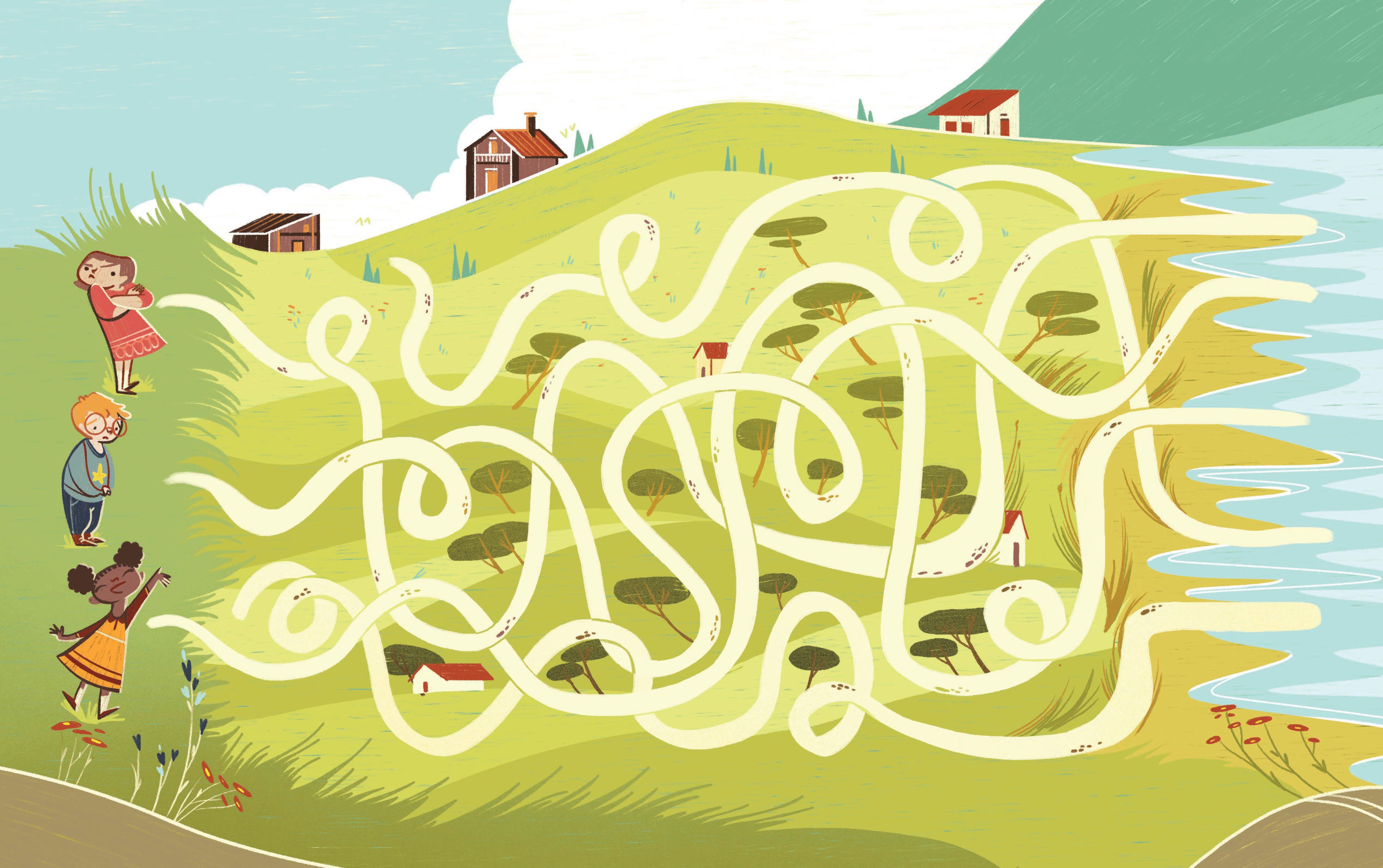 Which of the emotions on the right do you think these children are feeling? SAY IT out loud, and then CHECK by following the various paths.