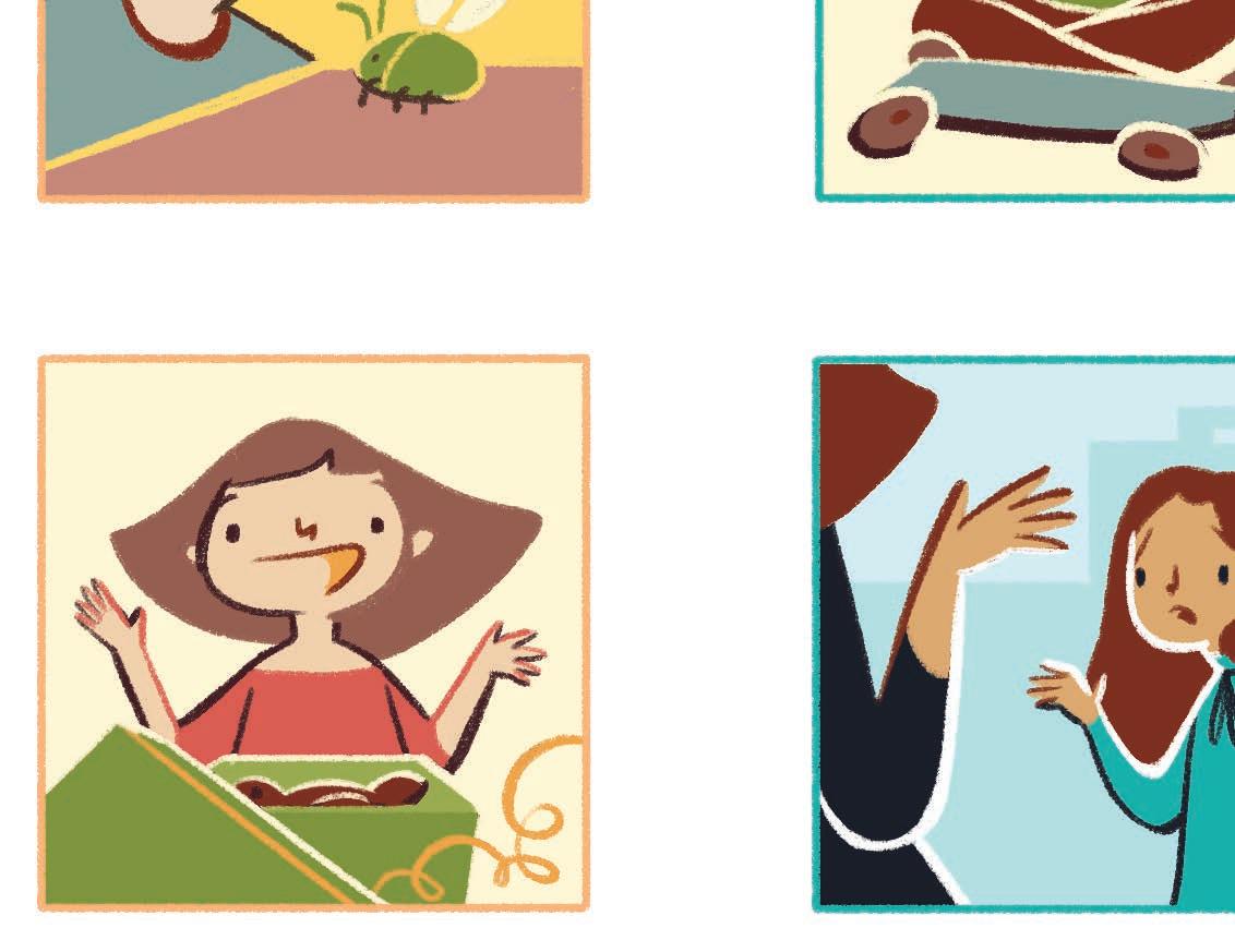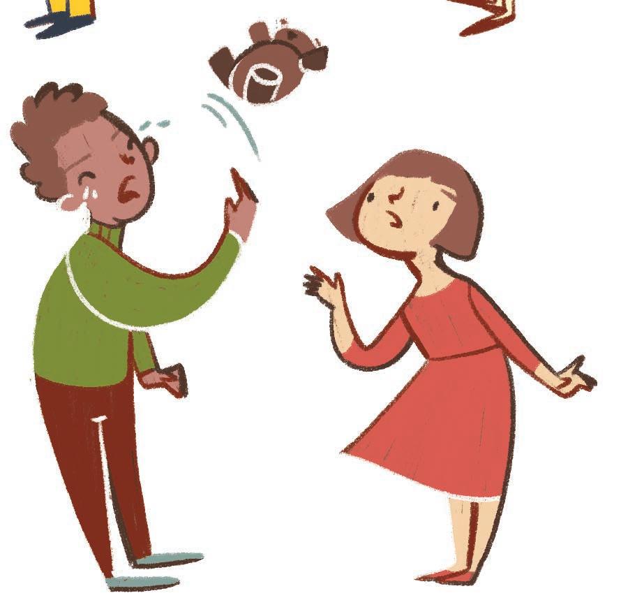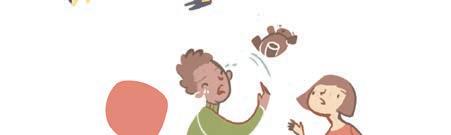 There is an angry child and a sad one in the situations below. COLOR the child that you think looks angry in red and the one who looks sad in blue.