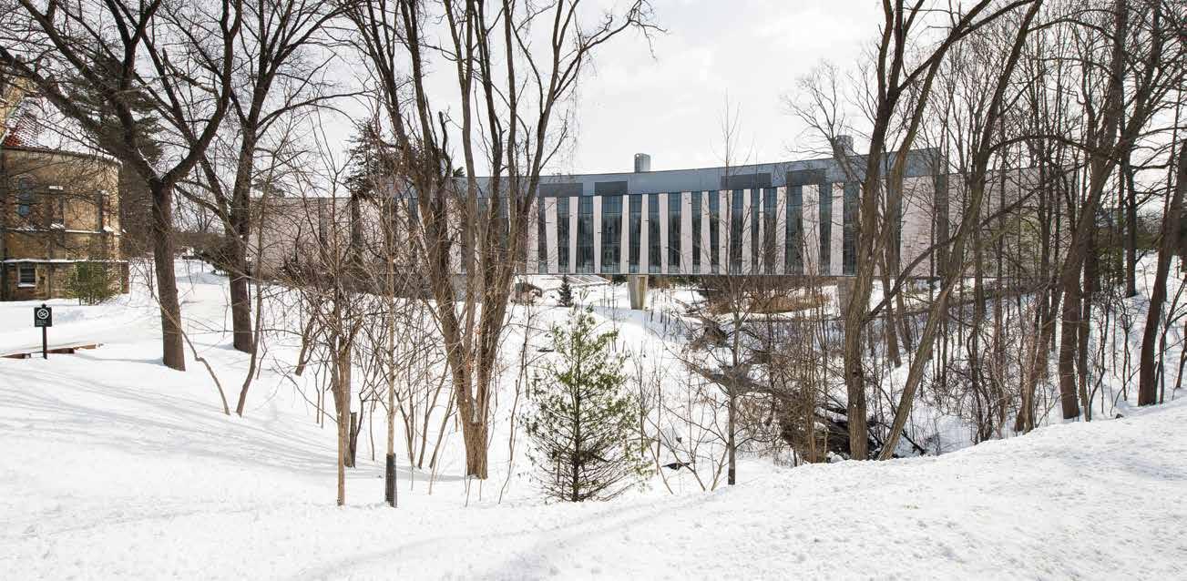Located at the heart of campus, the gently sloping site links two distinct site conditions: the arboretum to the west and the rectilinear order of the campus to the east. The building’s integration with the topography reinforces this dialogue.
