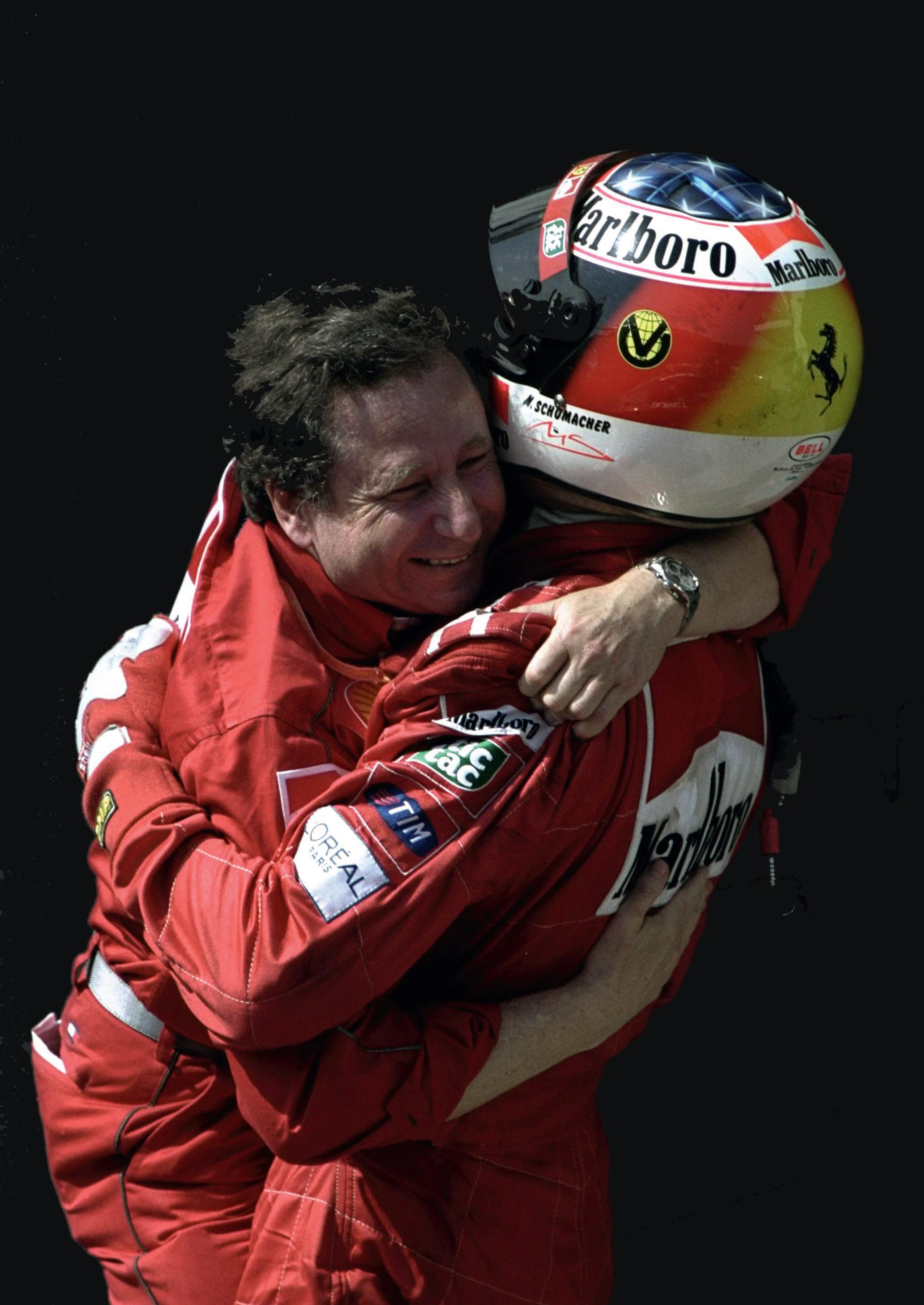 22 • Michael Schumacher hugging his good friend Jean Todt, Ferrari sporting director, after winning the San Marino GP on May 2, 1999.
