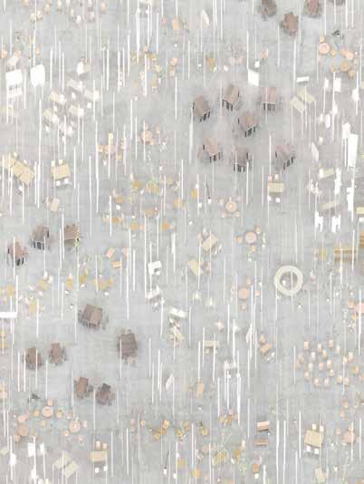 The Kanagawa Institute of Technology Workshop is a one-room single story building, approximately 2,000 m2 in area, that serves as a flexible studio and workspace for students, and is enveloped in floor-to-ceiling glass and filled with a forest of 305 slender white steel columns. This pixelated field of columns supports a thin, yet expansive white roof plane comprised of a gridded, two-way, steel-framed structure that is banded with parallel linear skylights running the length of the building. Despite the regularity of the building form and the crisscrossed grid of beams that support the roof and delineate the ordering of the ceiling plane, the thin columns appear to be scattered throughout the space, forming a heterogeneous rhythmic field that meets both the floor and ceiling in a random pattern of points. Rather than being positioned in relation to the primary gridded structure, at the ceiling these columns often intersect with a secondary set of beams that are offset from, and bridge, the spaces between this regular patterned structure. The columns filling the space, 42 of which operate in compression for vertical loads and 263 in tension for horizontal loads, are vertically extruded from a planimetric field of rectangular pixels with varying cross-sectional dimensions and axial orientations. Differentiation within this field therefore occurs not only through the global positioning and irregular spacing of columns within the building, but also through the variation of their local parameters—their individual rotations and changing planimetric dimensions—that are defined by shifting structural, programmatic, and aesthetic demands and that complexify the pixelated constellation they produce in plan while subtly transforming their perception in elevation. Within this bright, daylit space, structure is seemingly dissolved by this multiplicity of narrow attenuated elements whose white color, diagrammatic abstraction, and heterogeneous placement diffuse their substance into an almost invisible atmospheric field of matter. Space is defined within the building not by rooms, but rather by the changing density of this pixelated field. Clusters of columns and furniture accumulate and form boundary-less zones of occupation that reflect and influence the patterns of activity dispersed throughout the space.