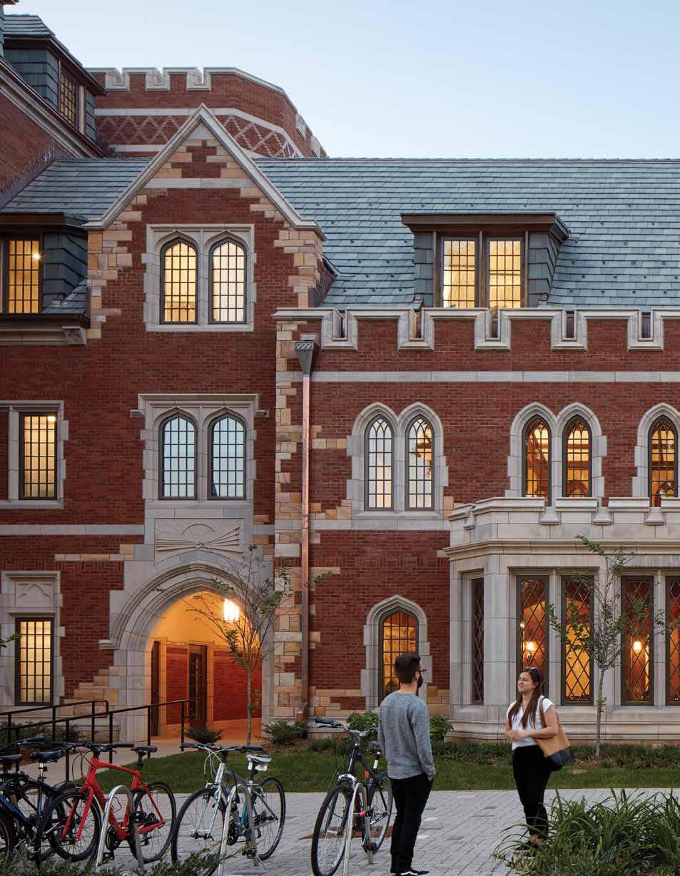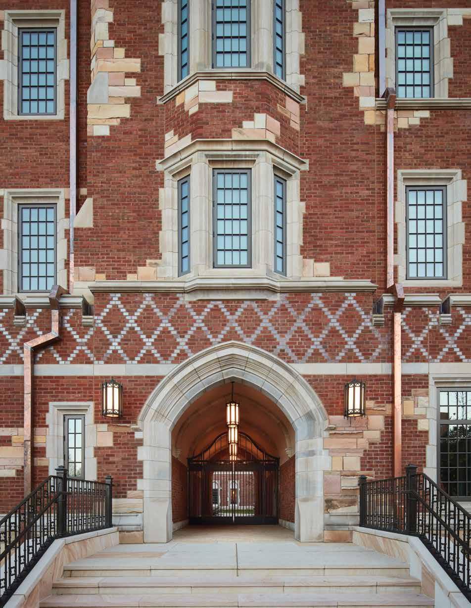 In designing Nicholas S. Zeppos College, David M. Schwarz Architects (DMSAS) borrowed a traditional type—residential colleges—for twenty-first-century student housing. The residential college model, communities of 300–400 students, “captures this notion of a more holistic, supportive, living-and-learning environment,” says Steve Knight, principal of DMSAS. “And it’s a bit of ‘what’s old is new again,’ because this is very much in the tradition, going all the way back to Oxford and Cambridge, Yale and Princeton.”
