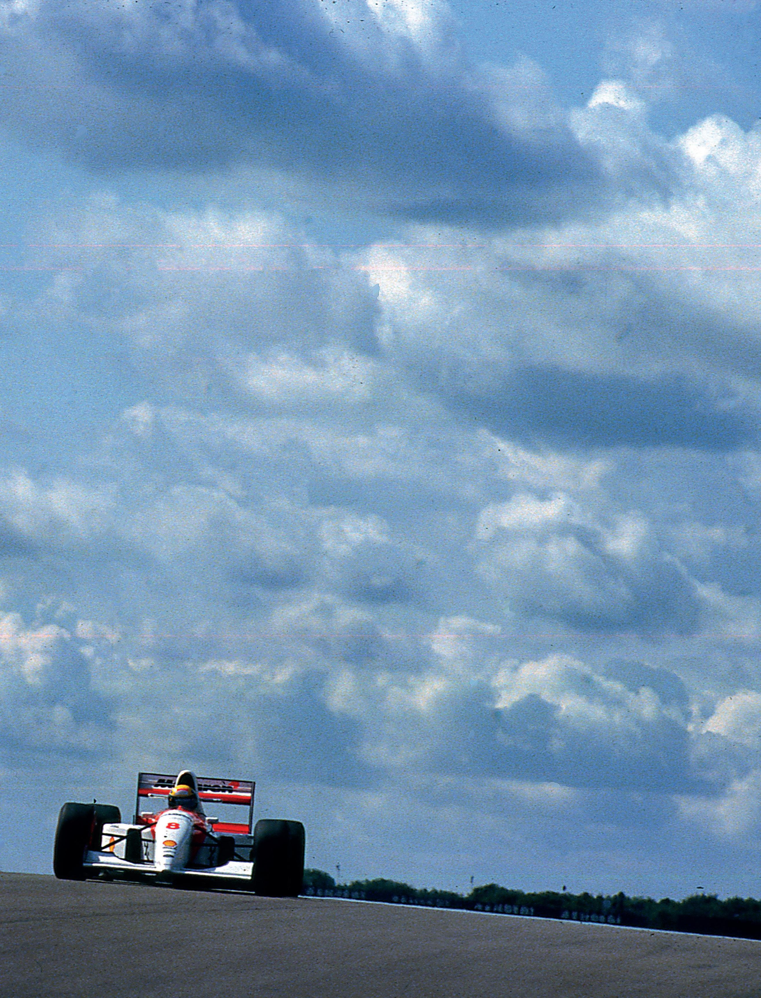 Top: Senna’s McLaren is seen from the rear—a common image the Brazilian’s subdued rivals see throughout the season.