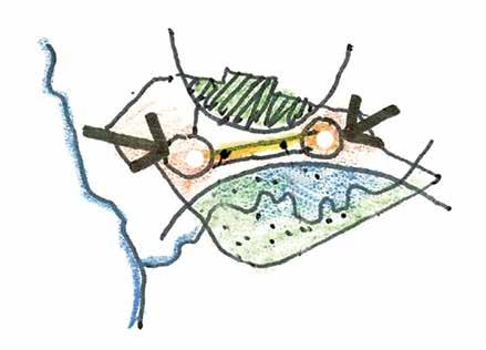 F IG . 44 : Freeform drawing with notational emphasis showing the eventual direction for a lineal campus.