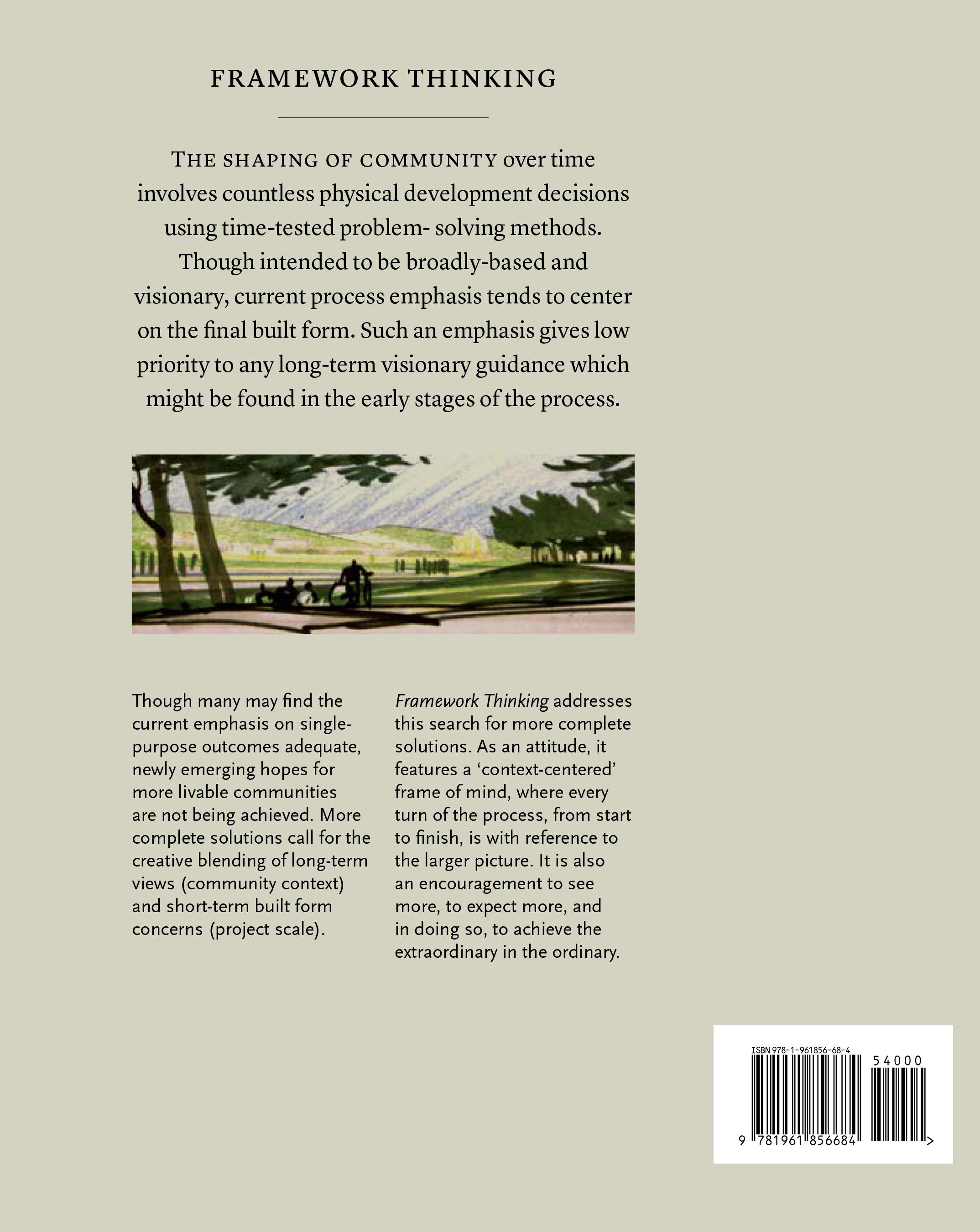 In the planning and design process, a Vision diagram drawn to scale and combined with a short narrative constitute a Framework plan. Together with a set of guiding principles, they complete the Framework Directions. This foundational document subsequently informs the implementation process with its familiar master plan. The difference is that the Framework Directions focus on long-term policy while the master plan is directed at short-term building design and construction.