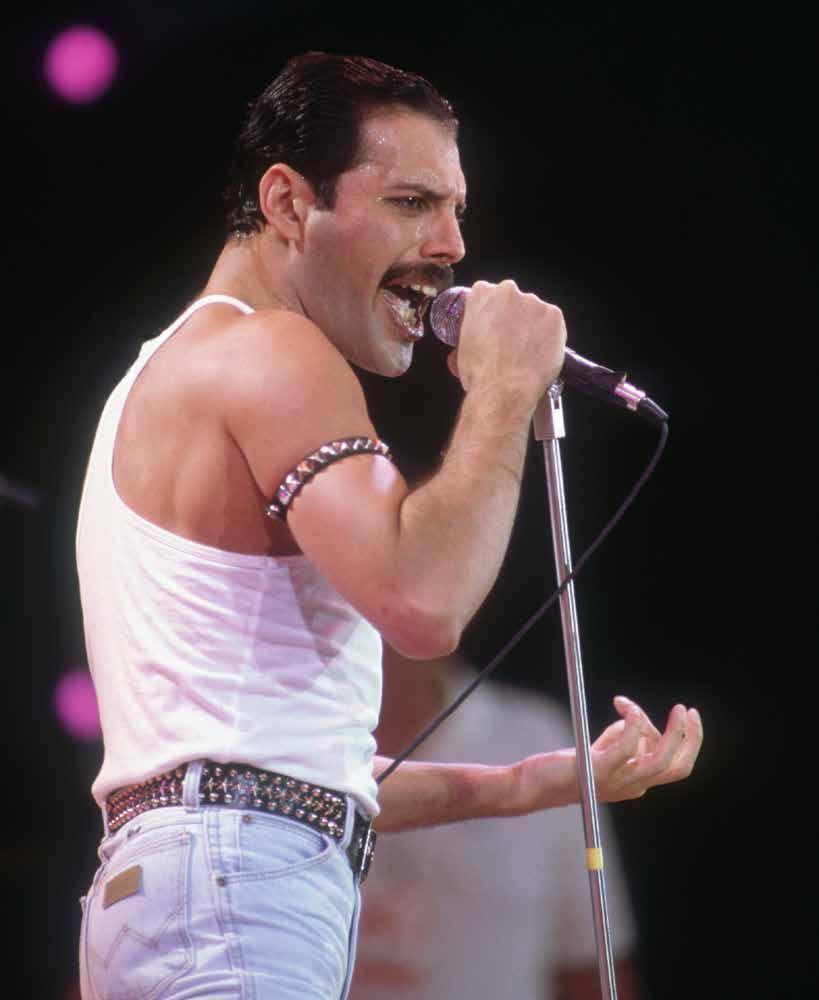 40 Freddie Mercury in concert with Queen at Earl’s Court in London in 1977.
