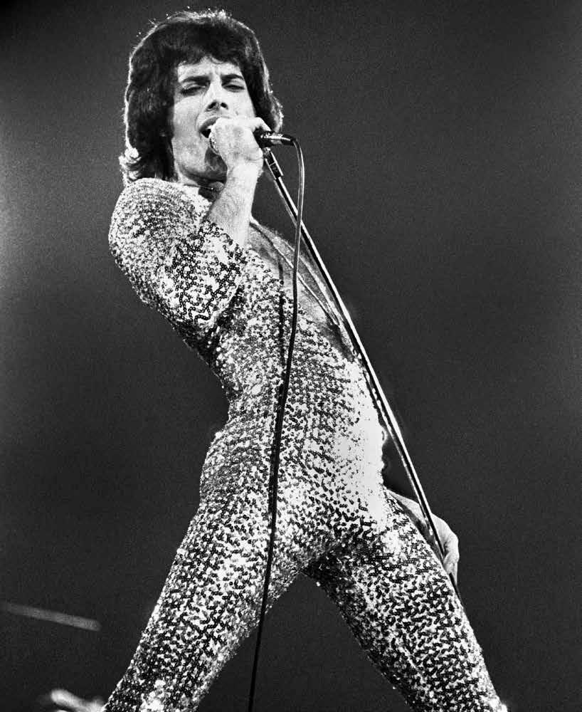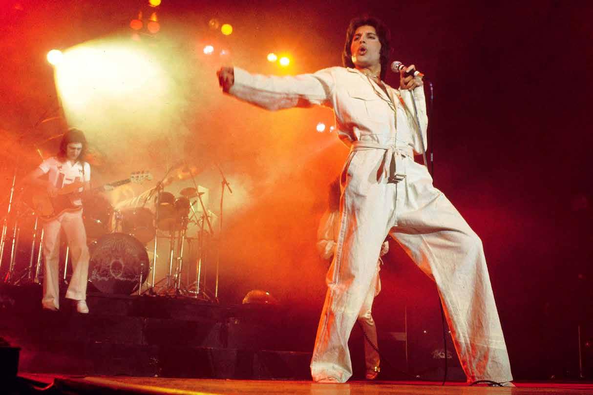 9 Mercury in concert in the Seventies. With sequins and glitter, Freddie Mercury represented the desire to exaggerate, to turn everything into a spectacle, to combine music with a vision that was part of the music itself..