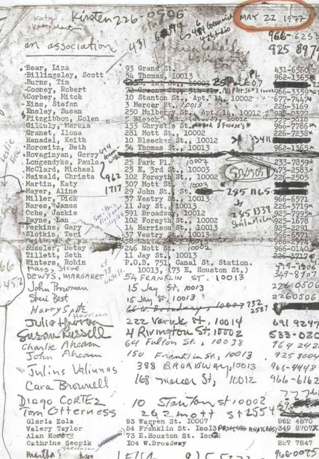 Opposite: Colab member list, May 22, 1977. Courtesy of Alan Moore