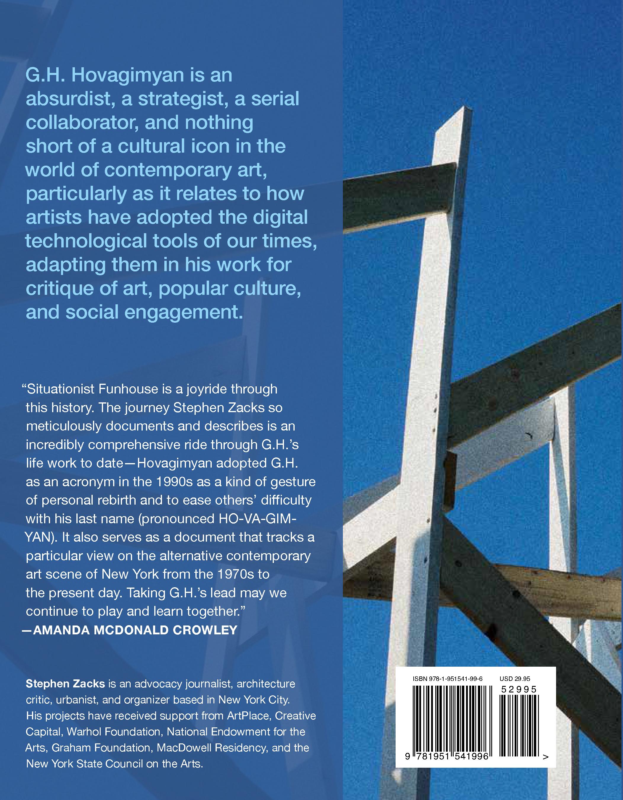 This project began as a catalog raisonnée of G.H. Hovagimyan, documenting his work over the course of the last 50 years. It evolved into a story spanning five decades of changing media and culture, and seven major periods of activity—a compelling reflection on shifts in technology and consciousness in the last half-century. Hovagimyan’s spirit as a critical and fun-loving observer carries throughout: we find him continually embracing new forms of media and collaboration as a kind of freeform aesthetic research. It’s a position that allowed him to stay on the cusp of the latest media being developed for representation, information distribution, sharing, and computer-generated altered realities, adapting commercial programs for his own purposes in the manner of hacking or détournement, the Situationist method of turning hegemonic cultural products against themselves.
