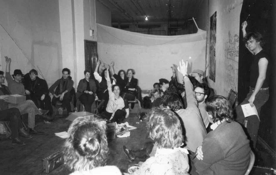 Top: Colab meeting on the second floor of 597 Broadway in Peter Fend’s loft, 1983. Photo: Albert DiMartino