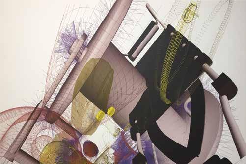 In At Home in Space, the theme is objects that you would have in the home, but when you’re out in space, they’re all exploded and blown apart and floating. There’s no up or down or anything, because all of these objects are freed from the post-and-lintel constraints of architecture. So, again, it’s a liberation and a recombination, deconstruction, reconstruction, or decontextualization, loosening them from their intended purposes…it creates a whole other place.174