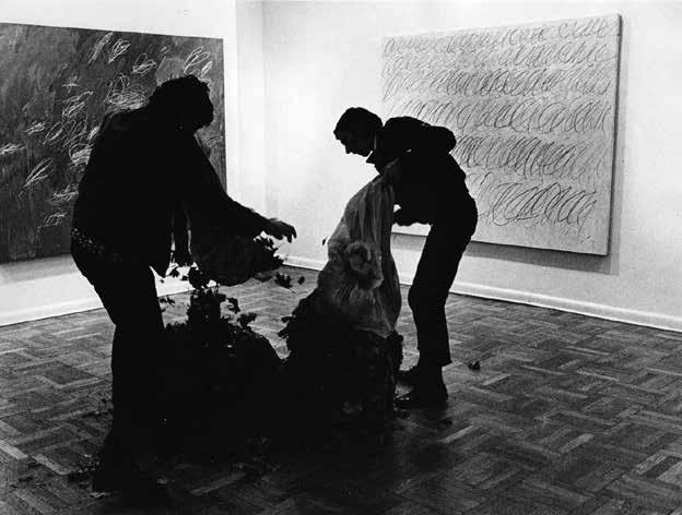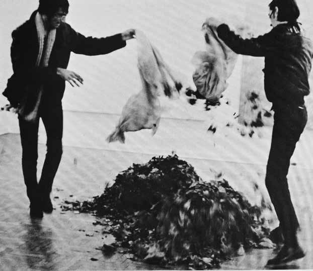 With two other students, Hovagimyan joined Ferrer in a truck from Philadelphia carrying large bags filled with leaves. They went to Leo Castelli’s galleries on 108th Street, 57th Street, and 77th Street and emptied the bags in the elevator, on the gallery floor, and in the stairwell. Castelli was at the time the most important gallerist in New York, representing Andy Warhol, Jasper Johns, Robert Rauschenberg, Frank Stella, and Cy Twombly, among other famous artists.