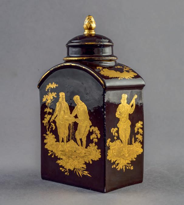 44 TEEDOSE MIT DUNKELBRAUNEM FOND UND GOLDMALEREI
