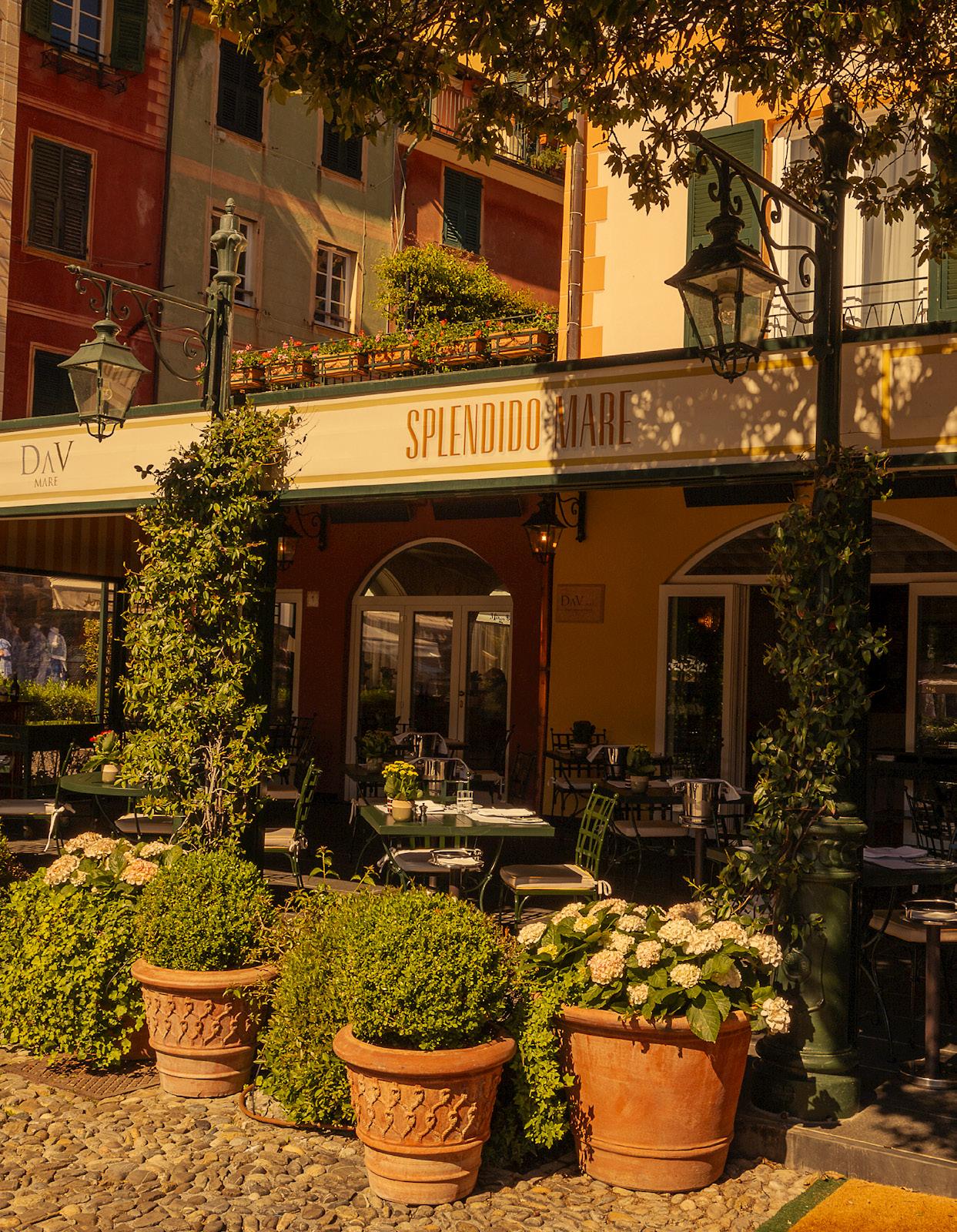Down along the harbor of Portofino, Michela, the general manager of the Splendido Mare, comes striding up from the other direction in an immaculately tailored Dior suit and wearing huge sunglasses We meet and hug She looks like an old-style Hollywood starlet, perfectly befitting of Portofino itself She leads us to her realm a few meters from the water’s edge The Splendido Mare is part of the iconic Belmond Splendido, up in the hills of Portofino . For years, the Mare and its fifteen rooms were little more than an extension of the grand hotel But then Michela came along and turned this hotel’s concept completely on its head, filing away at it until it had a stand-alone character, more like a boutique apartment than a scaled-down version of a giant hotel Her achievement was total Working with Festen Architecture, the Splendido Mare has crafted an interior that pays maximum tribute to Portofino, 1950s Italy, and the concept of a warm and welcoming residence for a protracted Italian vacation It’s understated but pleasant, comfortable, and the furnishings are so high-end it borders on excess: original Italian teak classics with canvas-adjacent textiles by Rubelli; painstaking terra-cotta mosaics in wave patterns on the floor, drawing the waters of the harbor into the hotel’s lobby; next to a stack of carefully curated coffee-table books, eclectic Murano vases sourced from our friends at Stories of Italy, whom we will be visiting later, when we go to Venice The intimate character of the hotel, pleasing and relaxing, continues seamlessly in our room, and to top it off, we have a terrace with the most incredible view of the harbor It’s actually really hard to tear ourselves away But Michela has invited us to join her for dinner