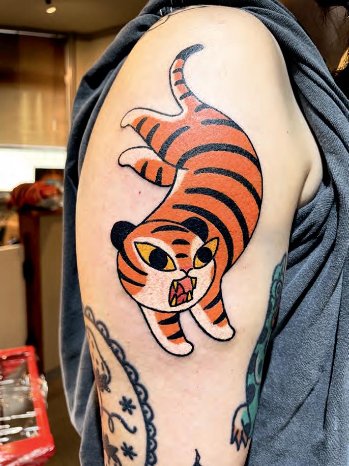 Originally from South Korea, Buoy The Fishlover currently lives and works in Vancouver, Canada, after previously tattooing at Studio Temple in Seoul. After obtaining a major in sculpture at Hongik University, Buoy began tattooing in September 2018 and has since built a growing international clientele. Buoy describes his designs as dumb, funny and harmless, and his work features playful, light-hearted depictions of animals in silly, endearing situations. With a focus on bringing joy through art, Buoy creates feel-good designs that are both unique and uplifting, making people smile wherever they go.