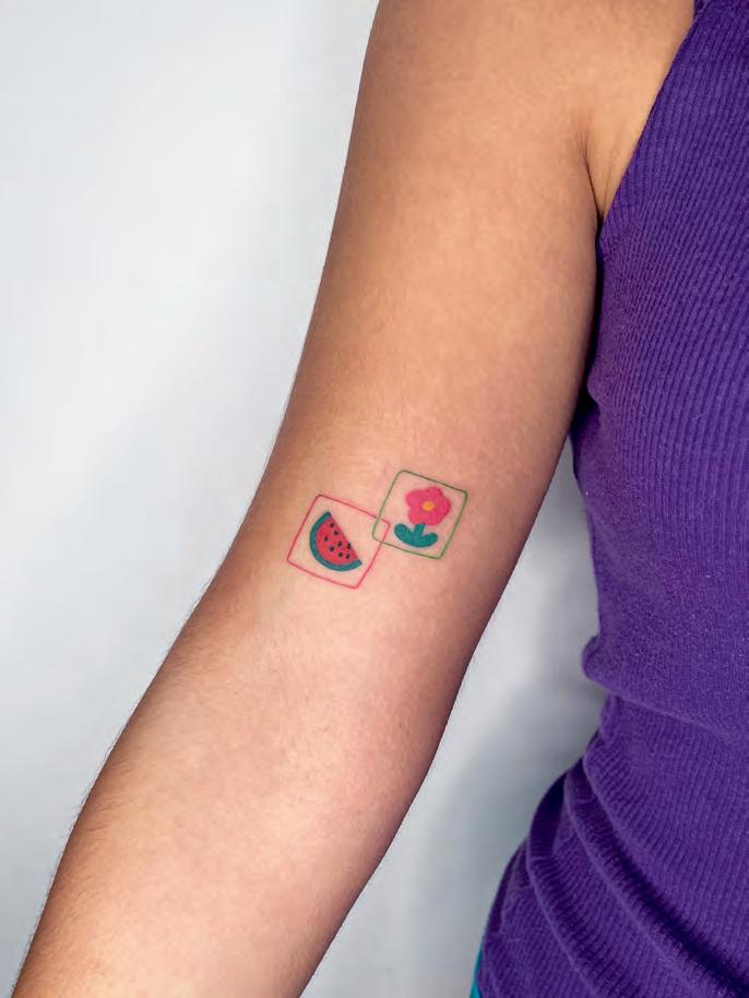 Ágata Gonçalves, professionally known as Agataris, is a Portuguese tattoo artist based in Porto. Since 2016, she has been working from her private studio, Lusco Fusco, developing a distinct visual language defined by bold colours, abstract forms and a focus on one-of-a-kind compositions. Each tattoo is created as a singular piece, designed to be worn by one person.
