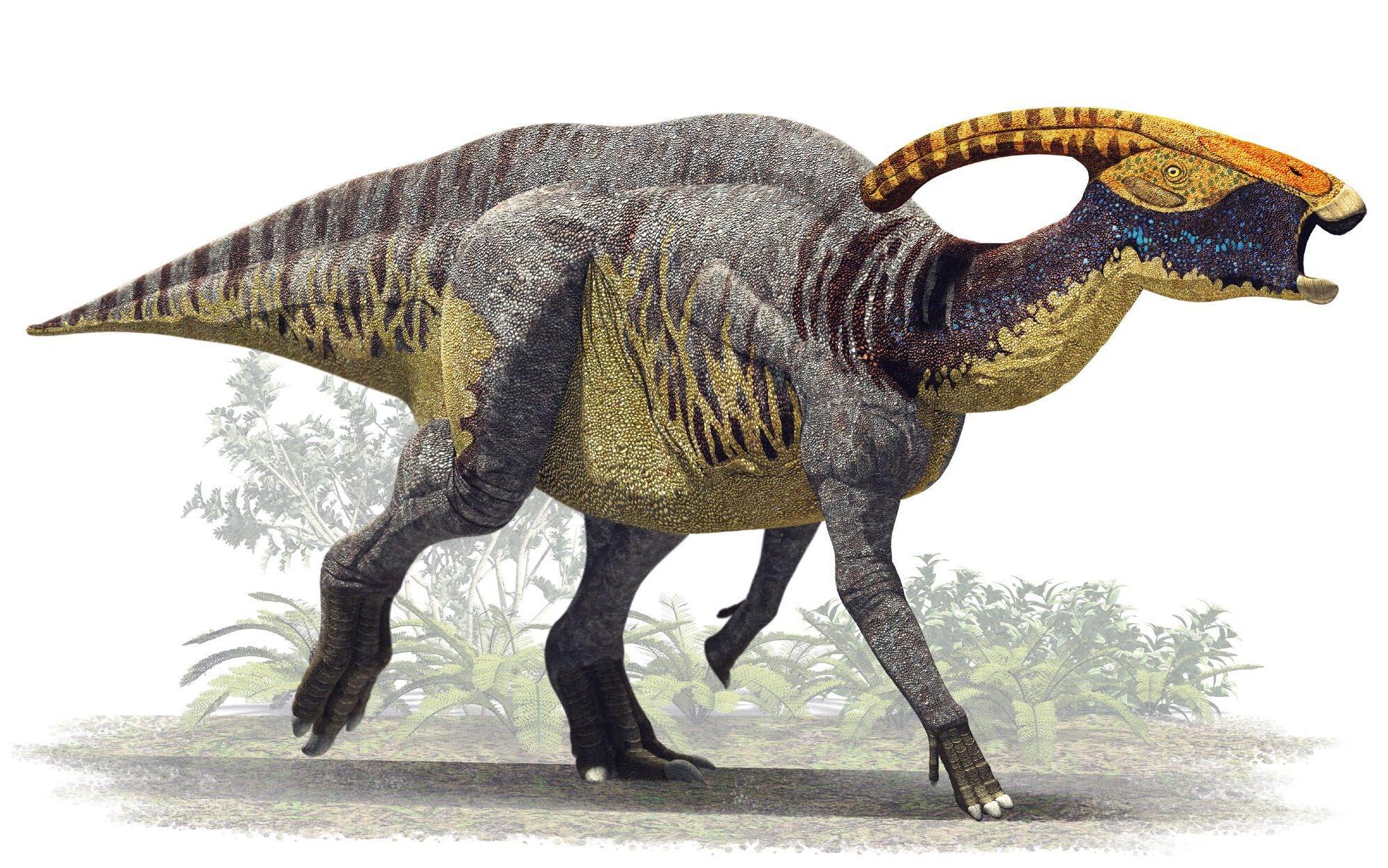 Some have called this dinosaur the “GREAT TRUMPETER.” Why? It was able to produce incredible sounds. Its over 3 ft (1 m) long crest was hollow and the maze of chambers inside was connected to the breathing, as air would pass through them in its journey from the nostrils to the lungs. If necessary, however, Parasaurolophus used them as a POWERFUL SOUNDING BOARD when creating sounds.