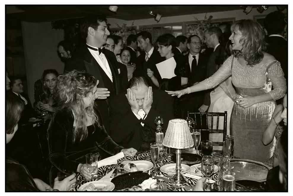So, on Oscar night 1994, there was a gap – an opening for a new party. The recently appointed editor of Vanity Fair, Graydon Carter, had been a guest at Swifty’s last party. Perhaps having seen its success, he decided to hold his own: the Vanity Fair Oscar party. That first year, the party was shared with a Hollywood film producer, Steve Tisch. Starting around 6 p.m., there was a smaller group of 150 or so guests eating dinner while watching the show on large television sets. The number of guests was probably