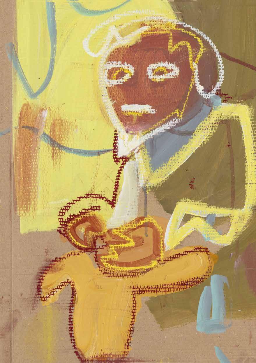 Ranging from monochrome pen-and-pencil sketches in sketchbooks to colourful mixed-media works on paper, cardboard and torn canvas scraps Hamilton calls ‘rags’, these drawings explore the Underground not only as a physical site but as a metaphor and place of metamorphosis.