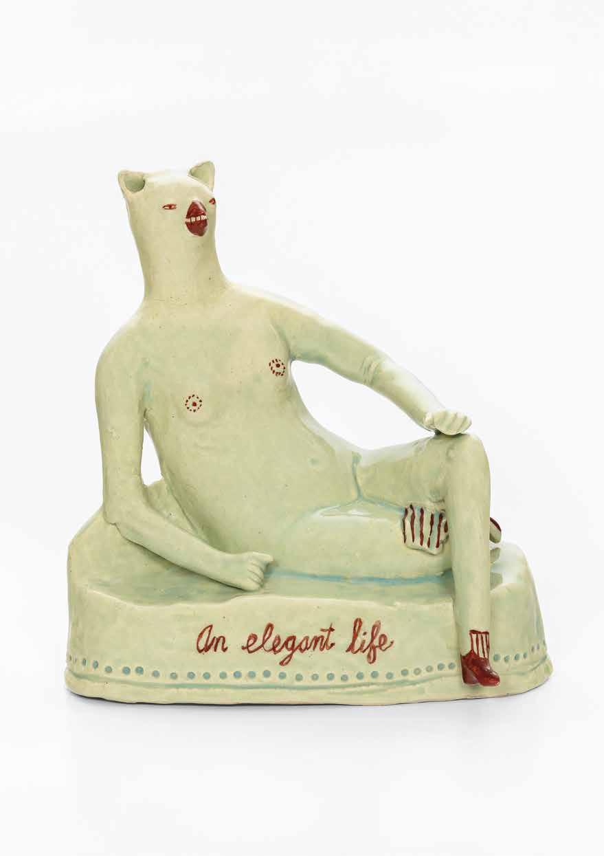 Painstakingly made by hand, this is a contemporary art practice that, with the precision of an architect or a draughtsperson, references craft traditions, using materials including paper, Plexiglas®, wood veneer, fabric and thread. Space, form, pattern, design and geometry meet with colour and light to form mesmerising, detailed scenes such as tiled swimming pools with mosaic walls, the imposing facades of Brutalist buildings and domestic interiors containing bookcases replete with books, vases and ornaments.