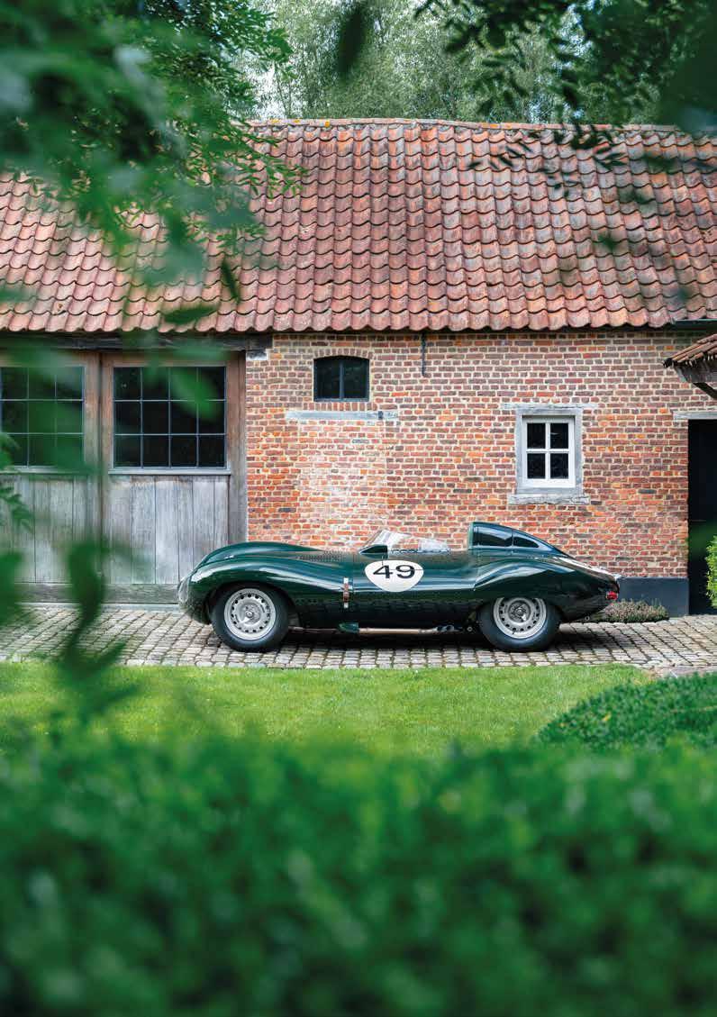 There’s a particular kind of silence to the Flemish countryside. The kind that hangs between red-brick barns and weather-worn shutters, where time gathers like dust on cobblestones. Into this stillness rolls a shape that feels both alien and perfectly placed: the Jaguar D-Type, deep green and impossibly low, crouched like a big cat at rest.
