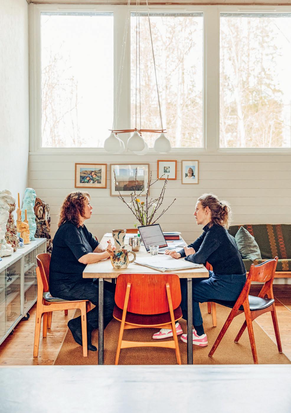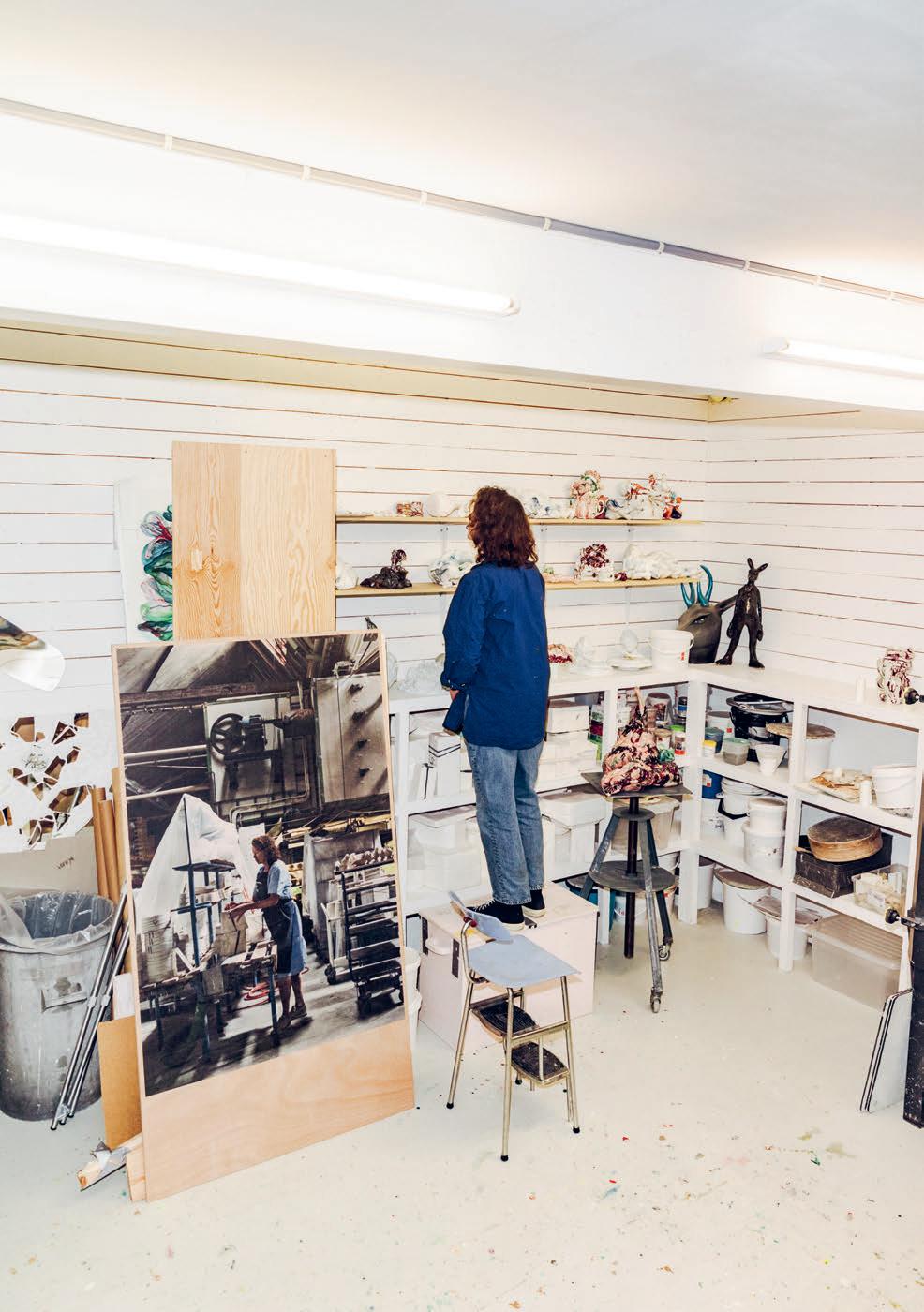 ← The studio at Bøler. The foreground photo was taken at Gustavsberg Porcelain Factory during Irene’s 2021 residency.