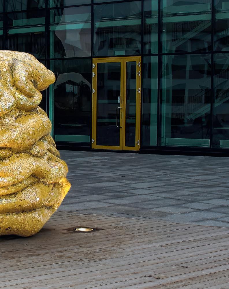 That Was the River. This Is the Sea Polyestyrene, fibreglass, polyester, glass- and ceramic mosaic, 2015 Public Art Commission, Bodø secondary school