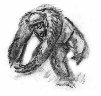The brutal ape fight now appears to be more chimp-like than gorilla-like. “Of course, I knew nothing about the behavior of these ‘chimporillas,’ as I called them, for that was before any field studies had been conducted. Chimpanzees are now known to pick up stout clubs with which to bludgeon opponents, as in my childhood drawing, and violent fights between male gorillas do indeed break out.”