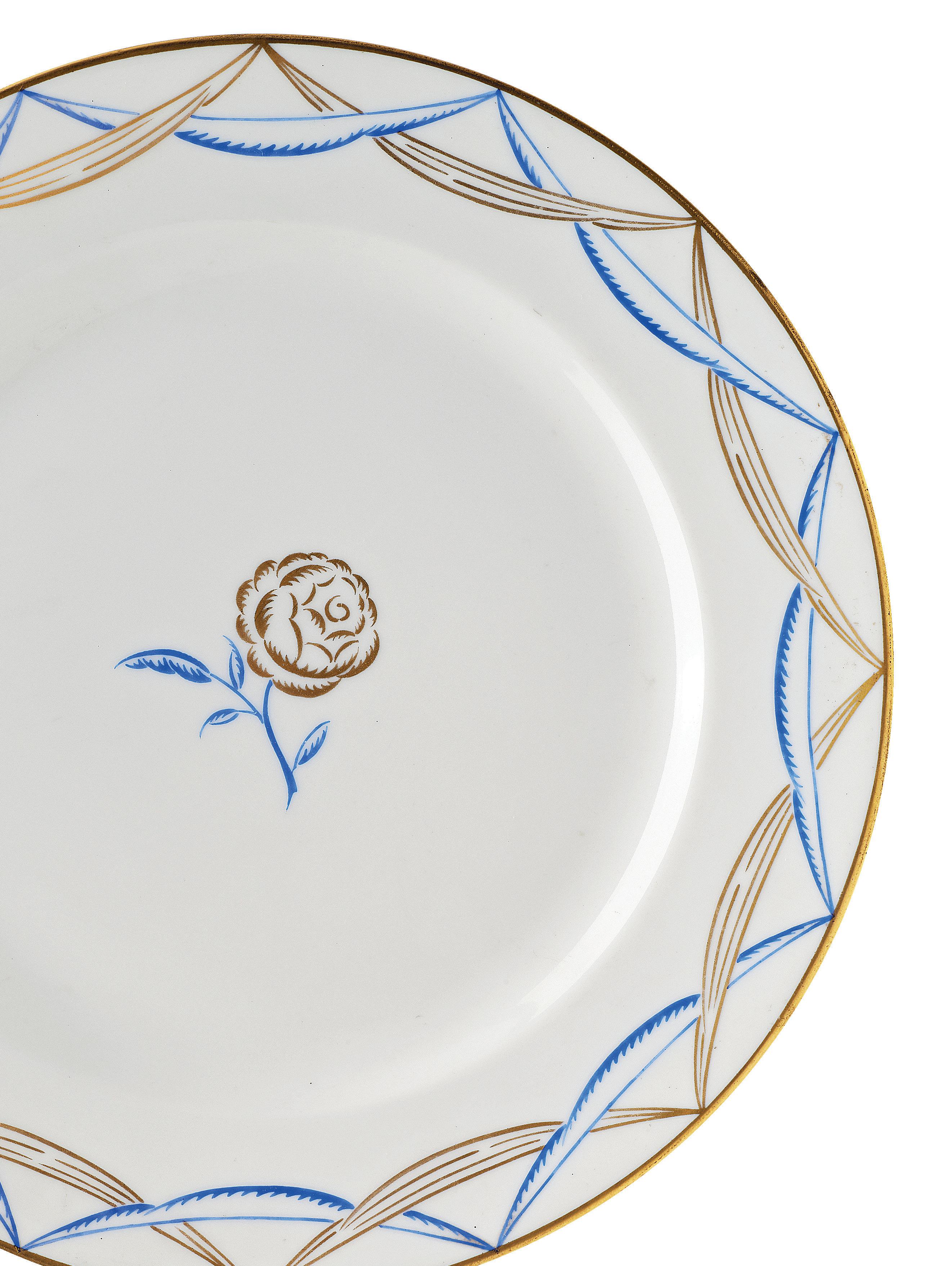 69 Assiette plate Rose sur tige, porcelaine, décor peint, Limoges, manufacture Lanternier & Cie, 1925. Paris, musée des Arts décoratifs, inv. 2014.30.4.12, don de la famille Jean Luce, 2014.