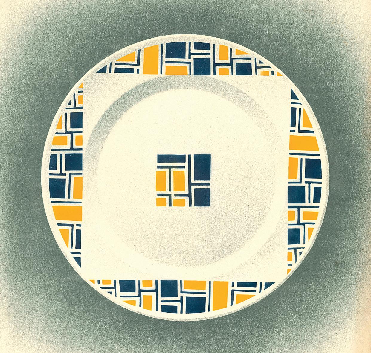 Double page précédente Assiette plate Rayons-nuages (détail), porcelaine, décor imprimé et peint, Limoges, manufacture Ahrenfeldt, 1925. Paris, musée des Arts décoratifs, inv. 25010, don de l’artiste, Exposition internationale des arts décoratifs, 1925.
